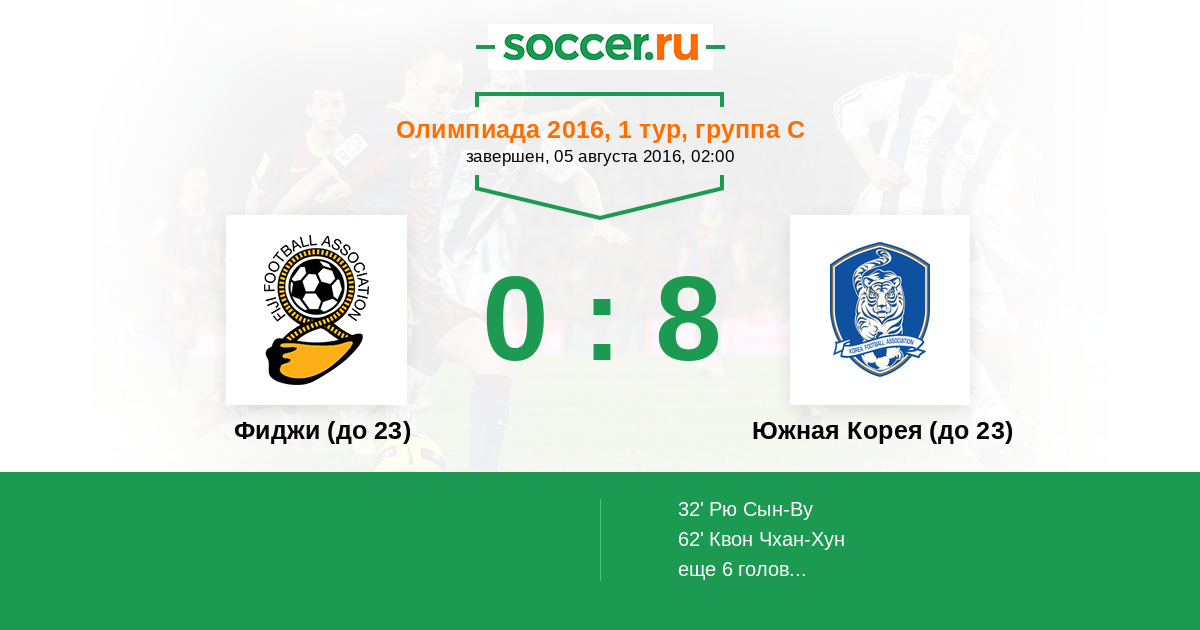 Фиджи (до 23) - Южная Корея (до 23): обзор матча 5 августа 2016