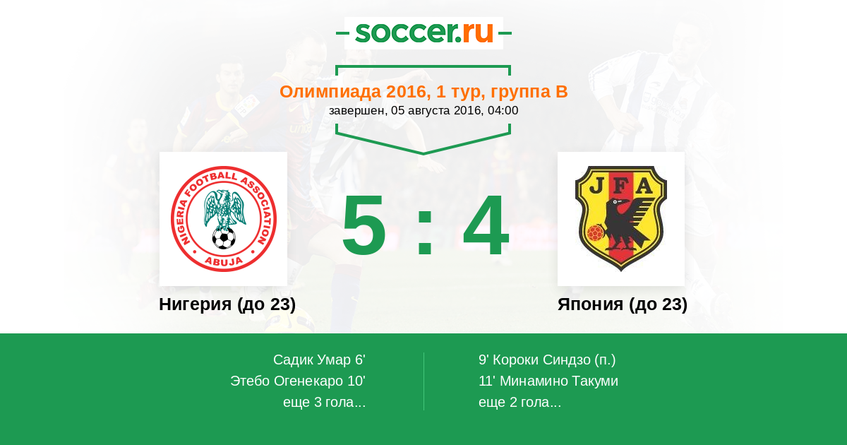 Нигерия (до 23) - Япония (до 23): обзор матча 5 августа 2016