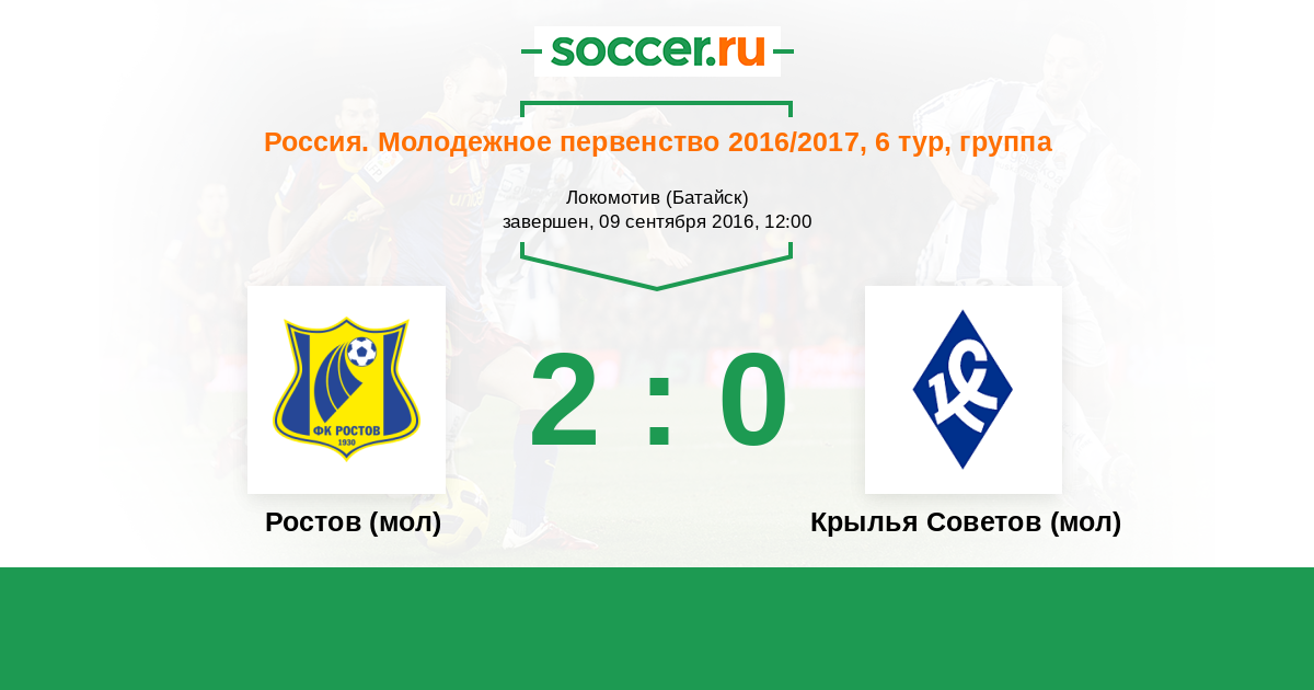 Ростов (мол) - Крылья Советов (мол): обзор матча 9 сентября 2016