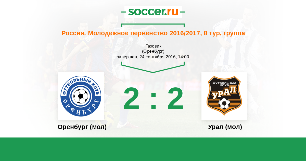 Оренбург (мол) - Урал (мол): обзор матча 24 сентября 2016