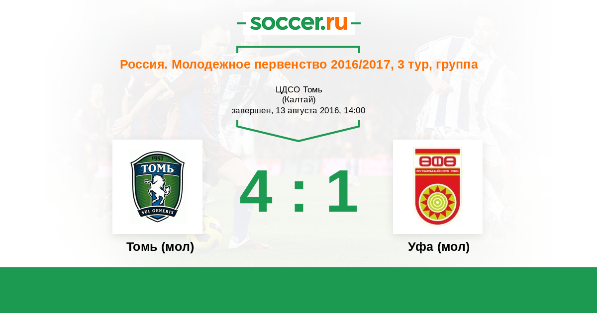 Томь (мол) - Уфа (мол): обзор матча 13 августа 2016