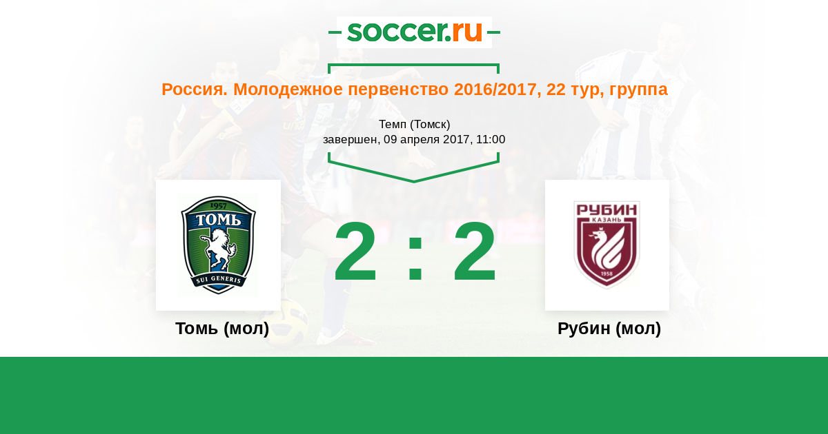 Томь (мол) - Рубин (мол): обзор матча 9 апреля 2017
