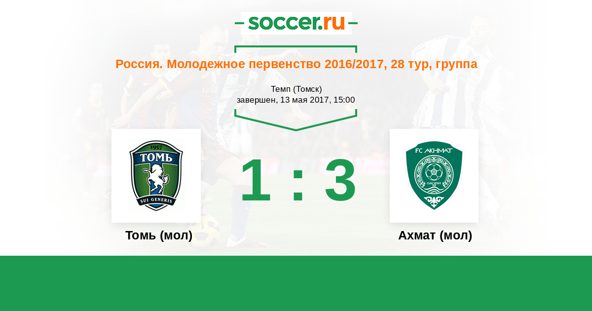 Томь (мол) - Терек (мол): обзор матча 13 мая 2017