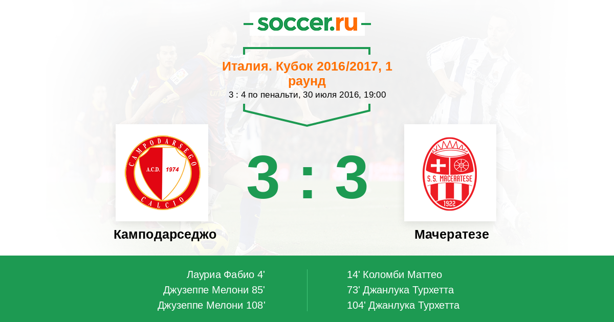 Камподарседжо - Мачератезе: обзор матча 30 июля 2016