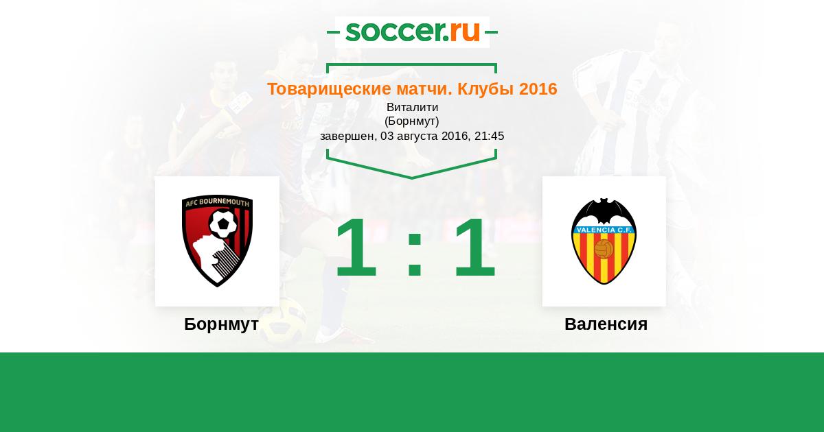Борнмут - Валенсия: обзор матча 3 августа 2016