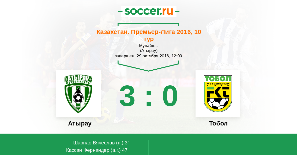 Атырау - Тобол: обзор матча 29 октября 2016