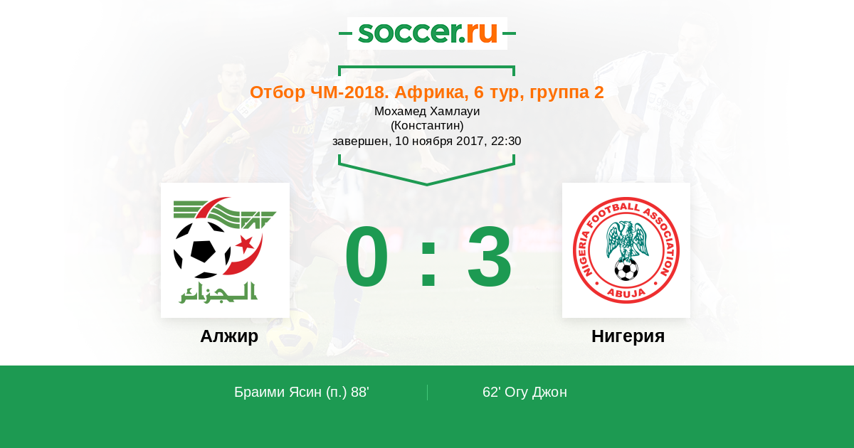 Алжир - Нигерия: обзор матча 10 ноября 2017