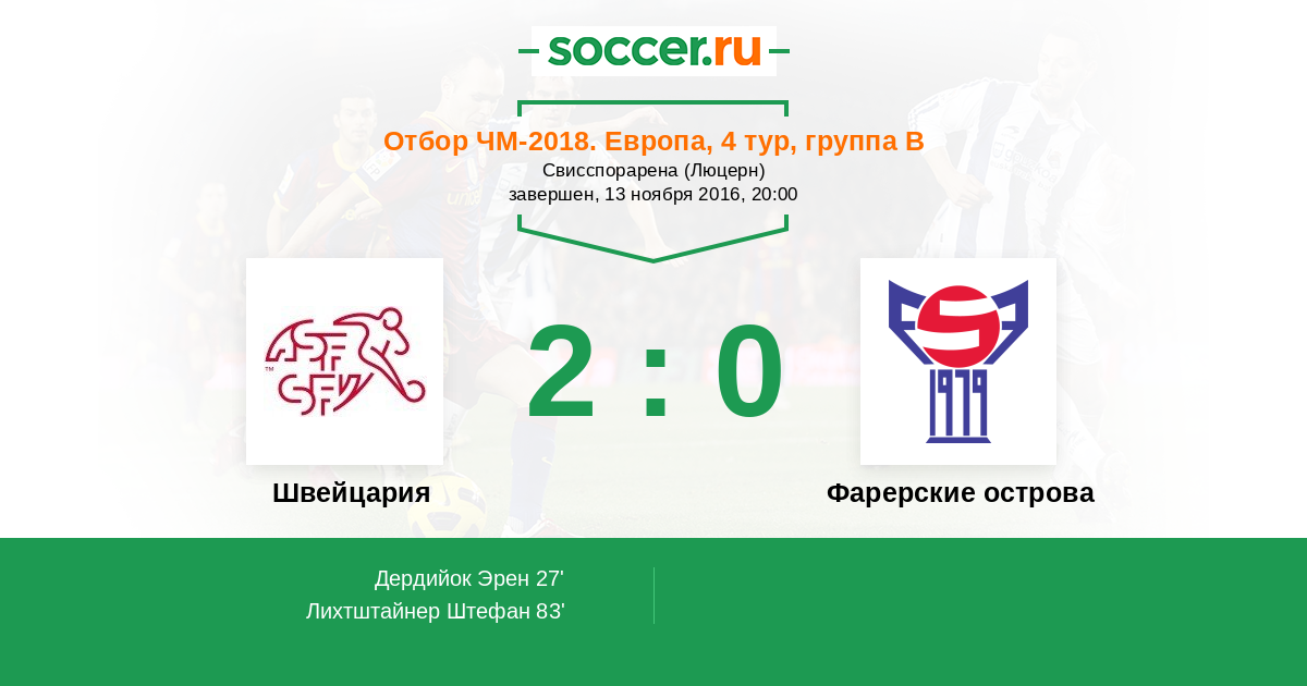 Швейцария - Фарерские острова: обзор матча 13 ноября 2016