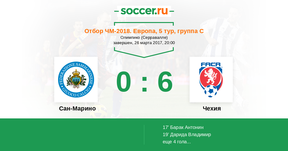 Сан-Марино - Чехия: обзор матча 26 марта 2017