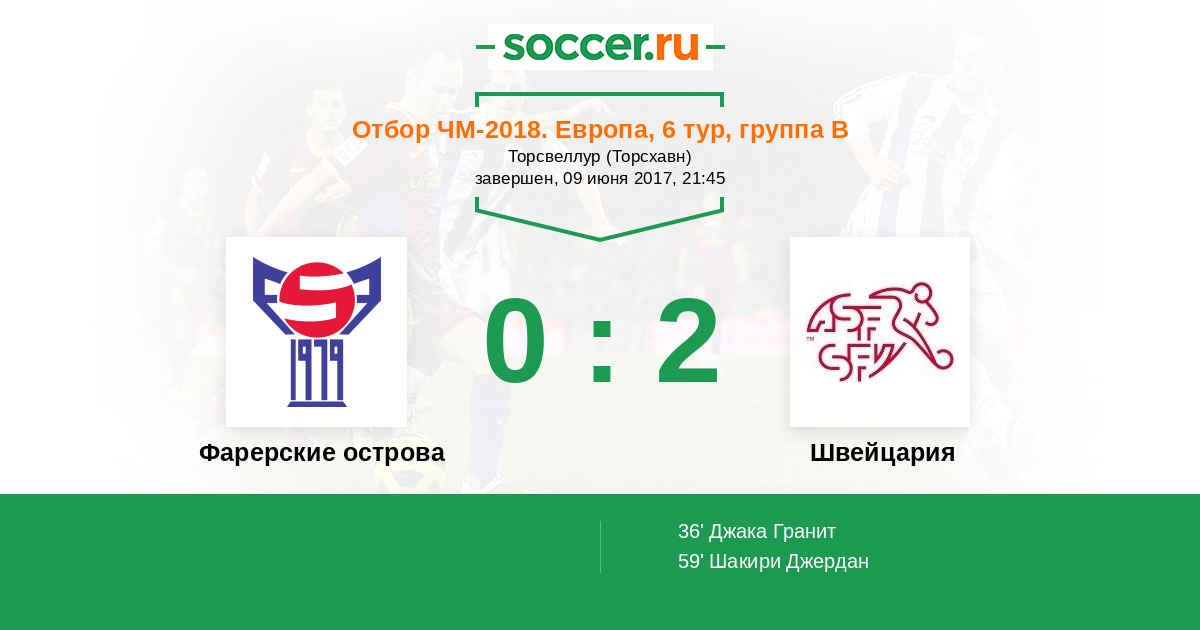 Фарерские острова - Швейцария: обзор матча 9 июня 2017