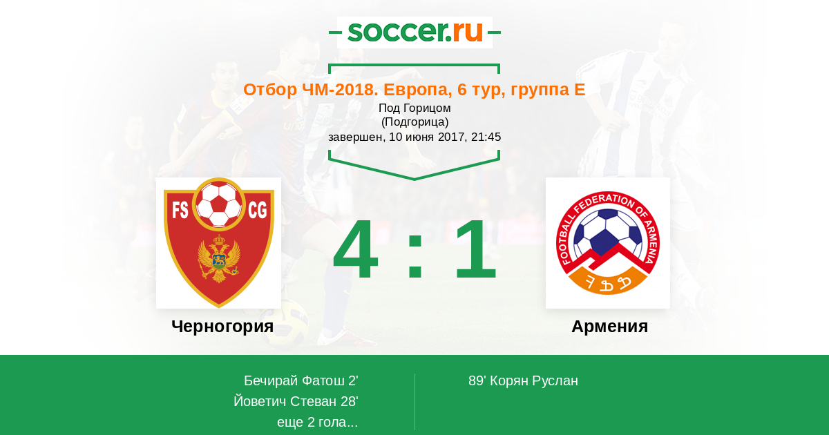 Черногория - Армения: обзор матча 10 июня 2017