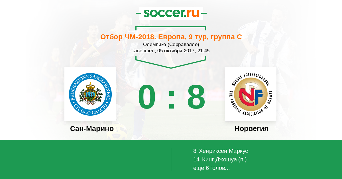 Сан-Марино - Норвегия: обзор матча 5 октября 2017
