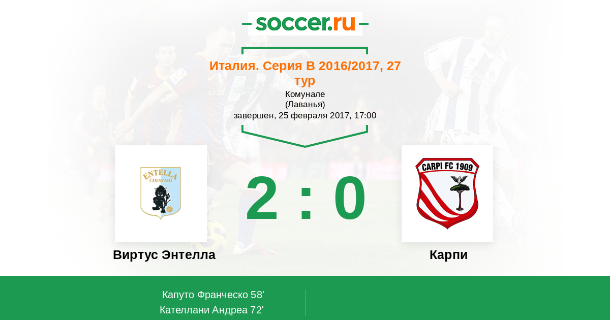 Виртус Энтелла - Карпи: обзор матча 25 февраля 2017