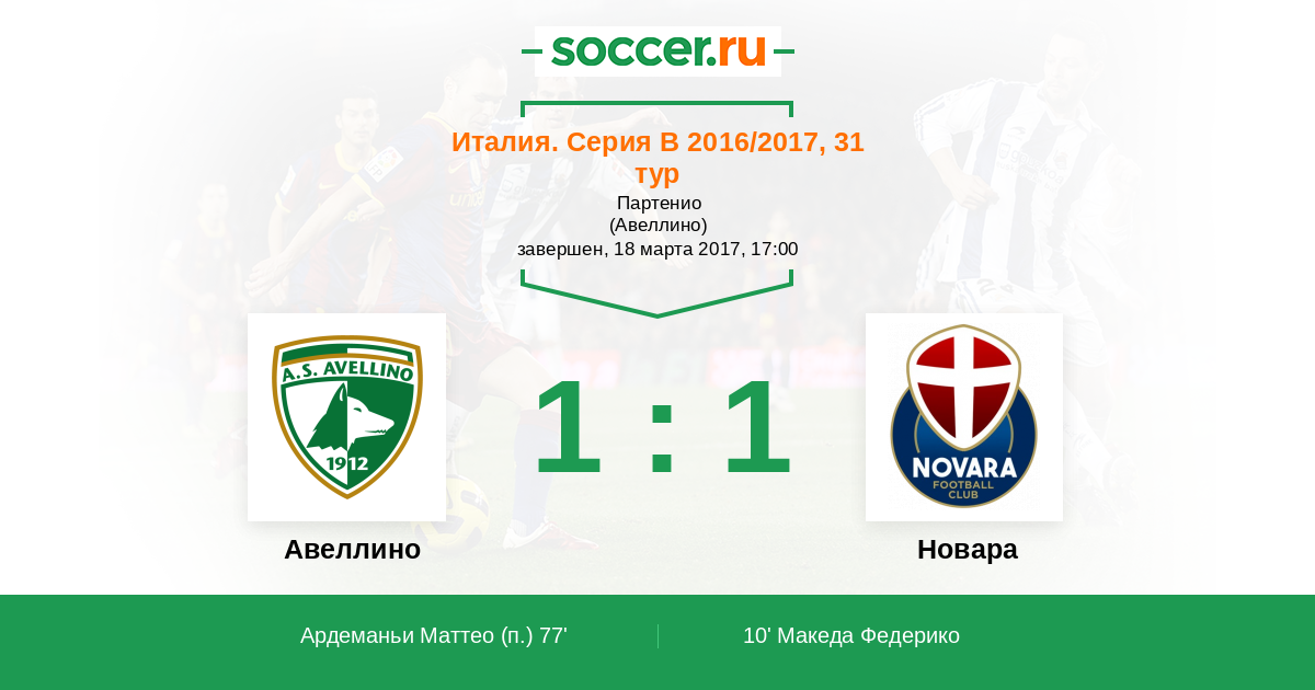 Авеллино - Новара: обзор матча 18 марта 2017
