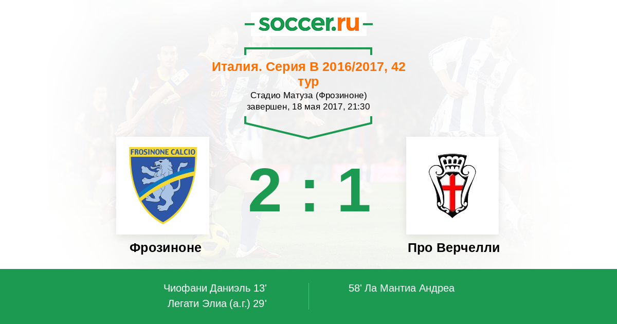 Фрозиноне - Про Верчелли: обзор матча 18 мая 2017
