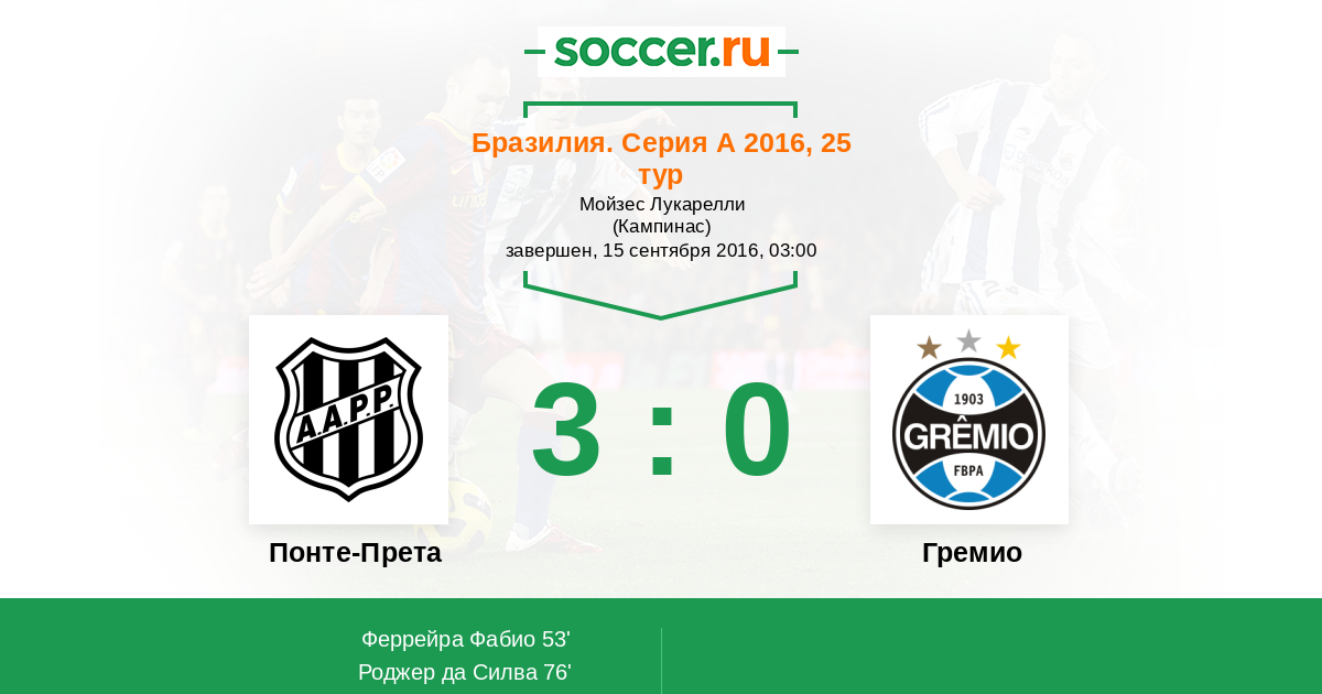 Понте-Прета - Гремио: обзор матча 15 сентября 2016