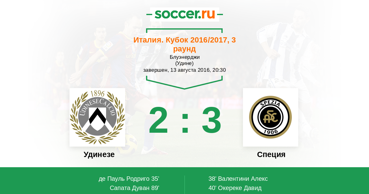 Удинезе - Специя: обзор матча 13 августа 2016