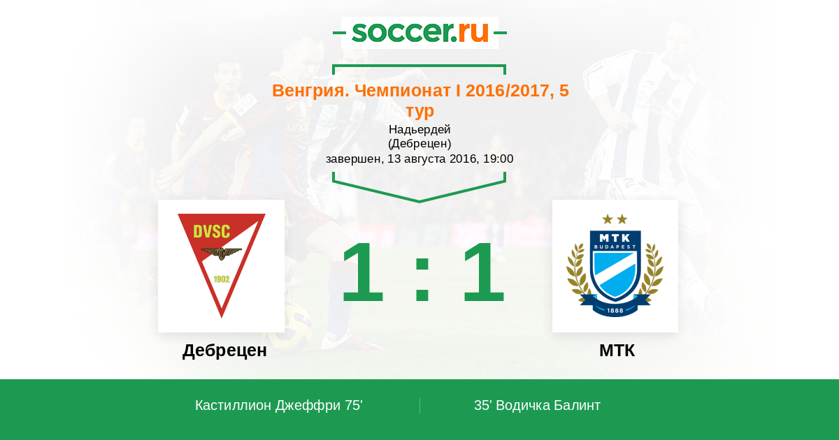 Дебрецен - МТК: обзор матча 13 августа 2016