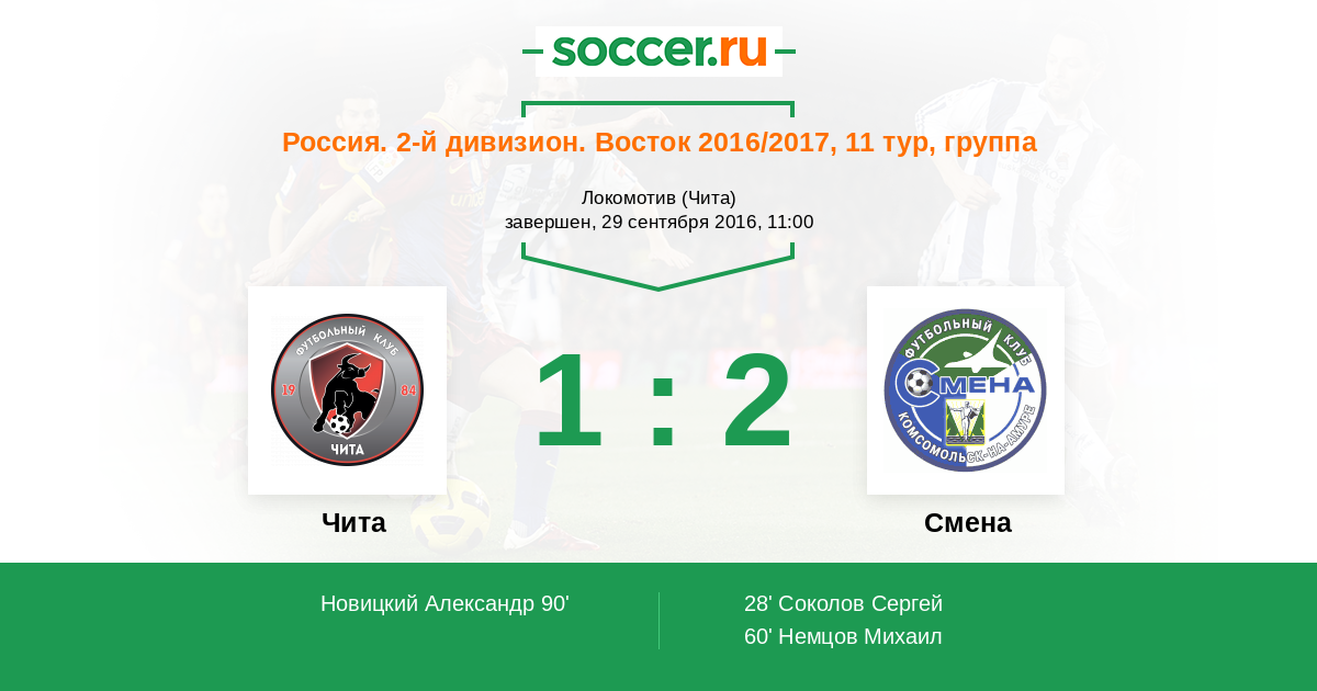 Чита - Смена: обзор матча 29 сентября 2016