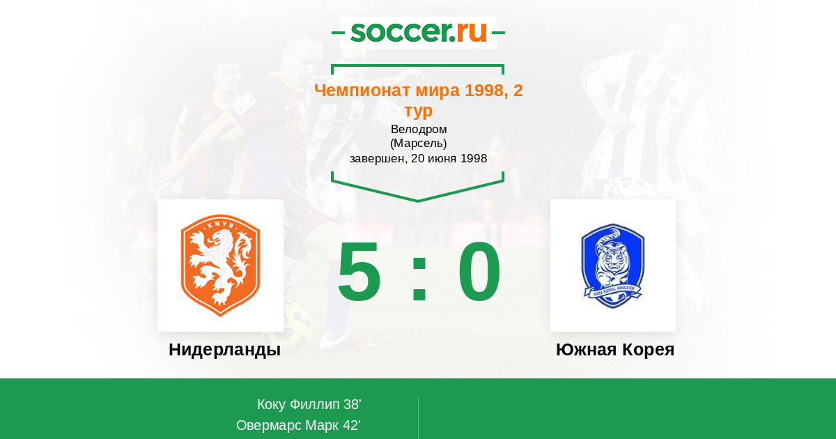 Нидерланды - Южная Корея: обзор матча 20 июня 1998