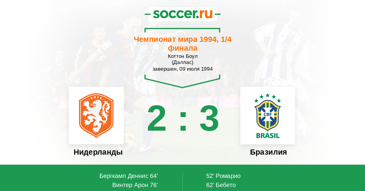 Нидерланды - Бразилия: обзор матча 9 июля 1994