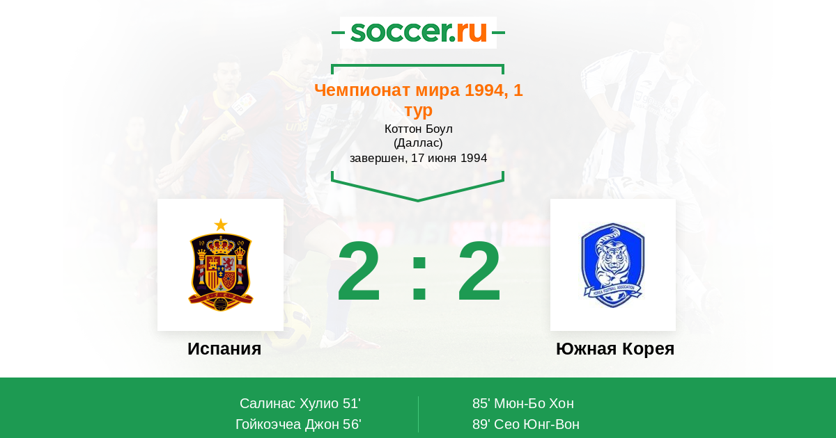 Испания - Южная Корея: обзор матча 17 июня 1994