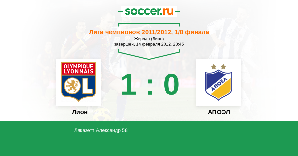 Лион - АПОЭЛ: обзор матча 14 февраля 2012