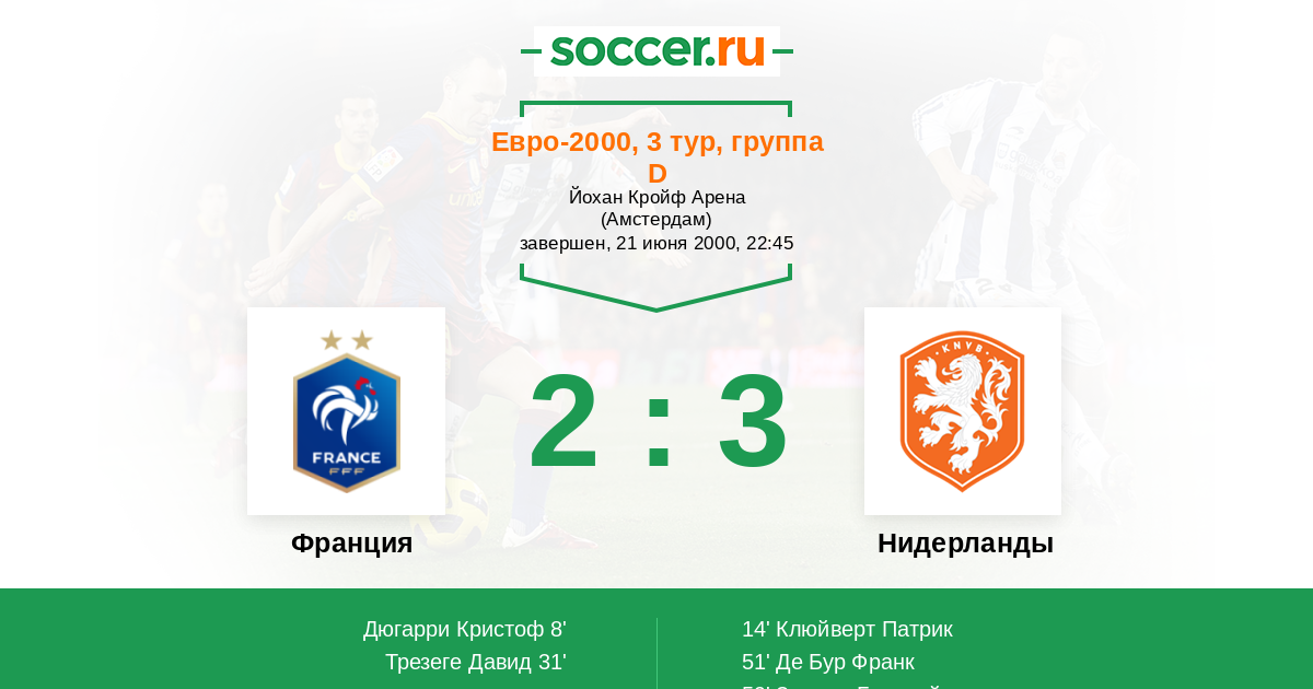 Франция - Нидерланды: обзор матча 21 июня 2000