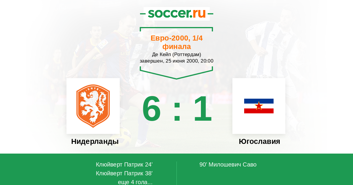 Нидерланды - Югославия: обзор матча 25 июня 2000