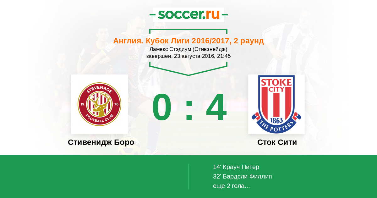 Стивенидж Боро - Сток Сити: обзор матча 23 августа 2016