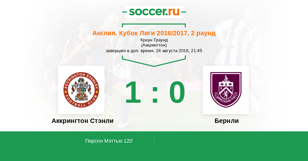 Аккрингтон Стэнли - Бернли: обзор матча 24 августа 2016