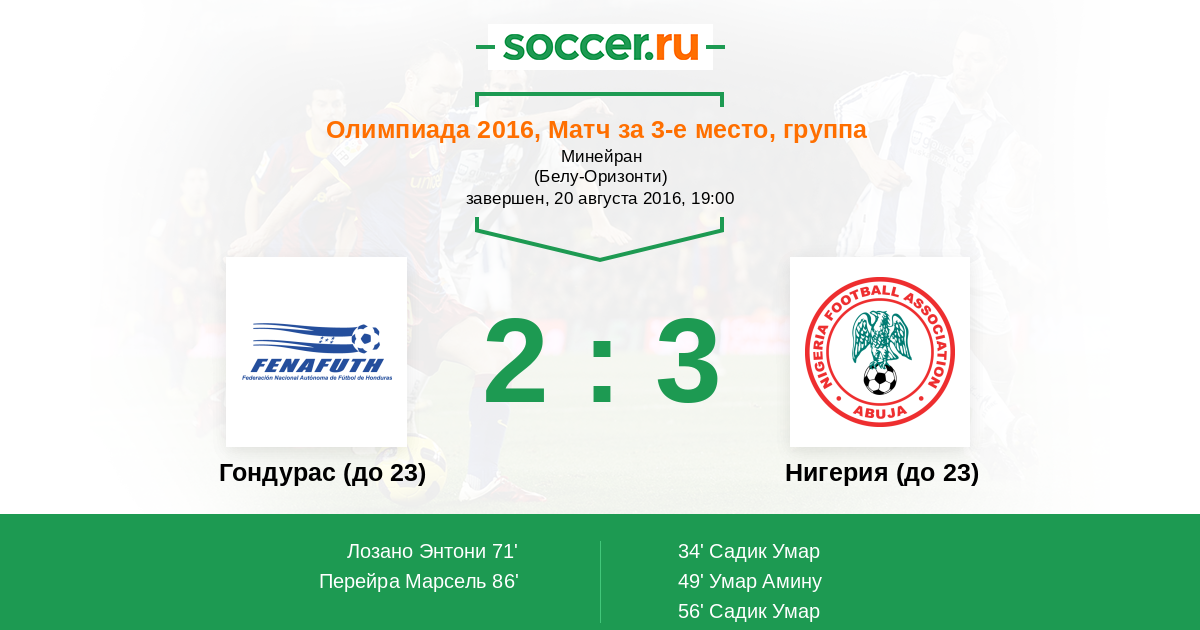 Гондурас (до 23) - Нигерия (до 23): обзор матча 20 августа 2016
