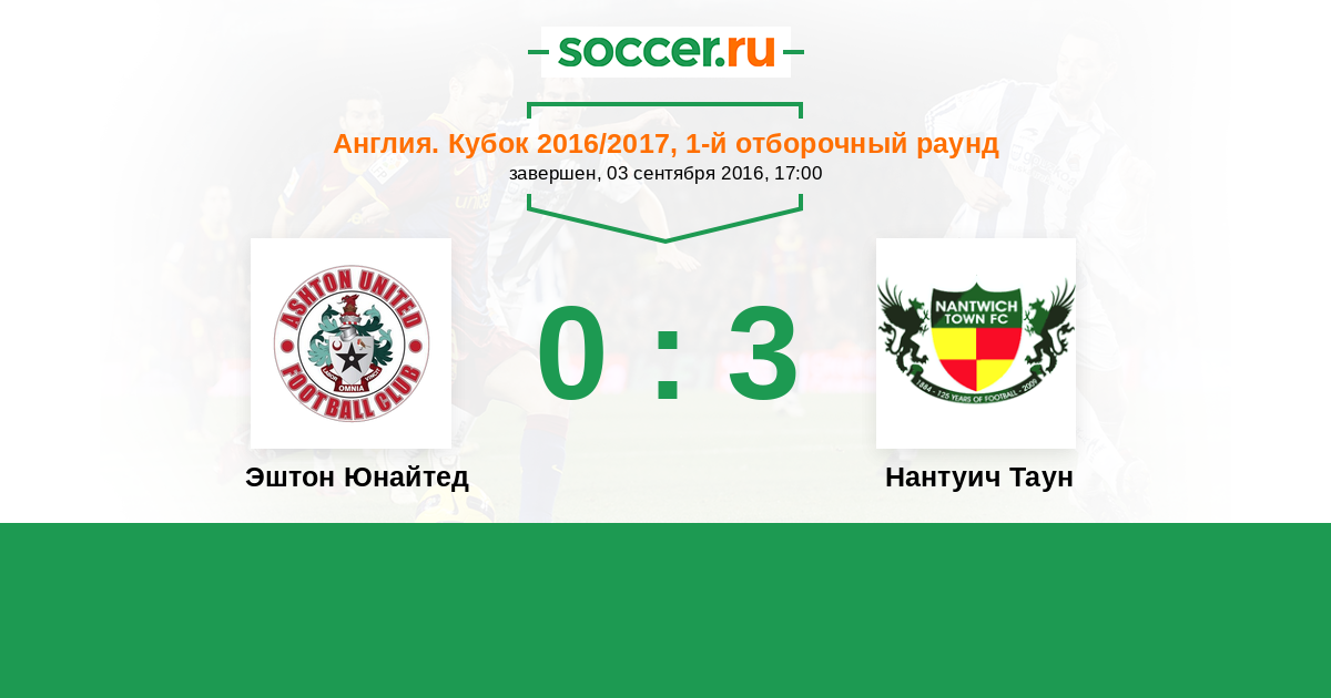 Эштон Юнайтед - Нантуич Таун: обзор матча 3 сентября 2016