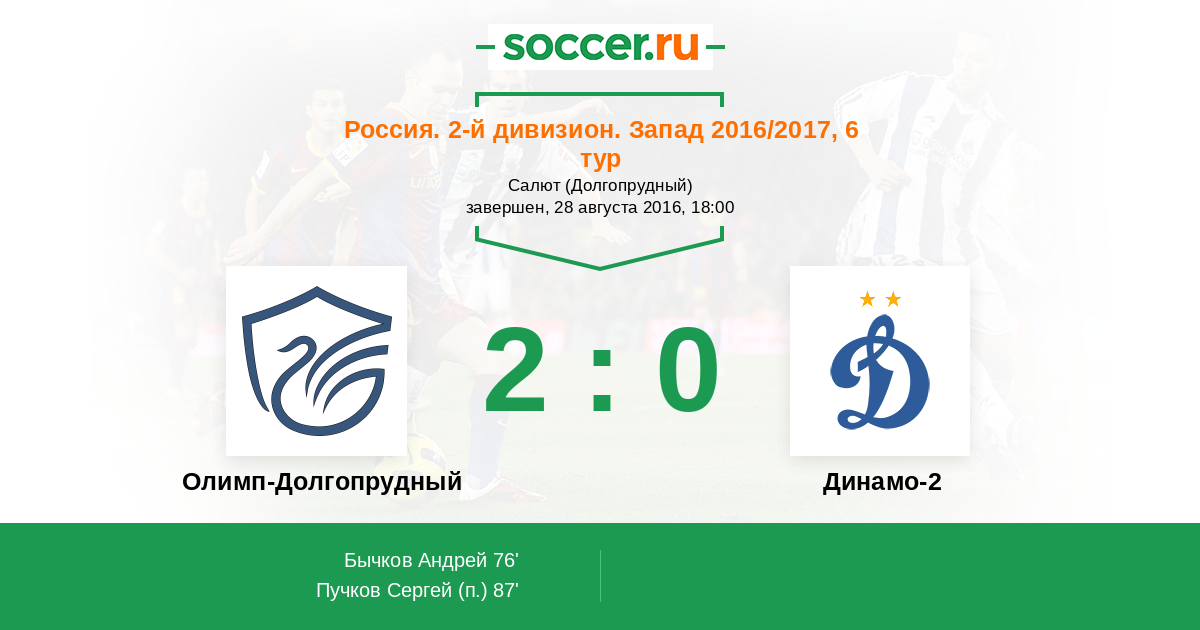 Долгопрудный - Динамо-2: обзор матча 28 августа 2016