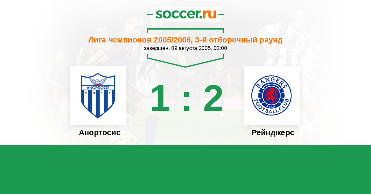 Анортосис - Рейнджерс: обзор матча 9 августа 2005
