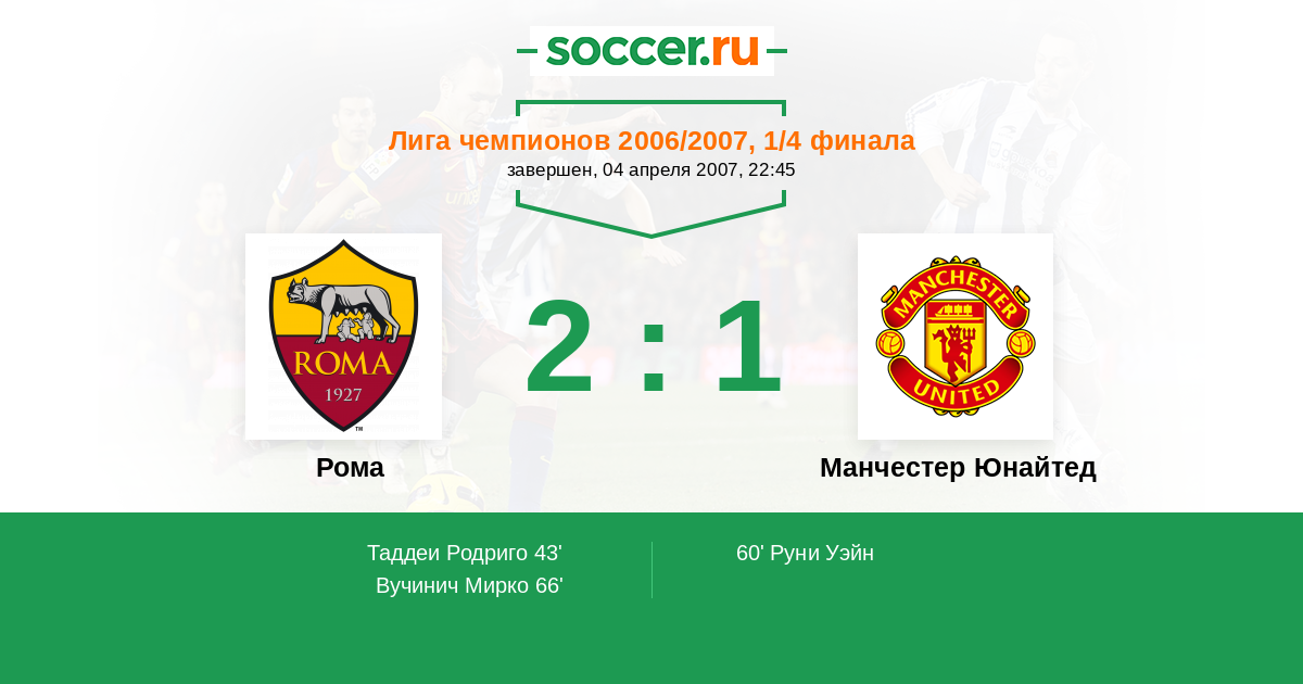 Рома - Манчестер Юнайтед: обзор матча 4 апреля 2007