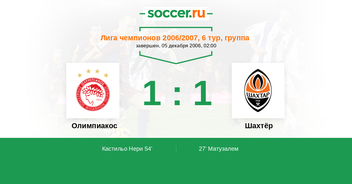 Олимпиакос - Шахтёр: обзор матча 5 декабря 2006