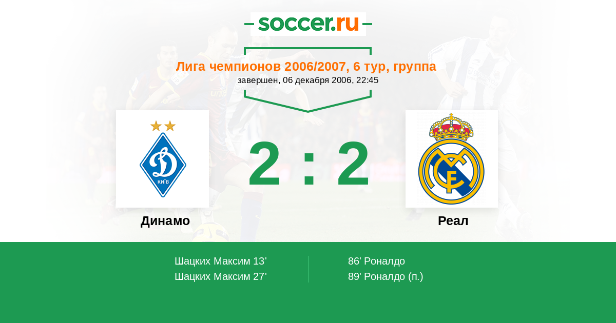 Динамо - Реал: обзор матча 6 декабря 2006