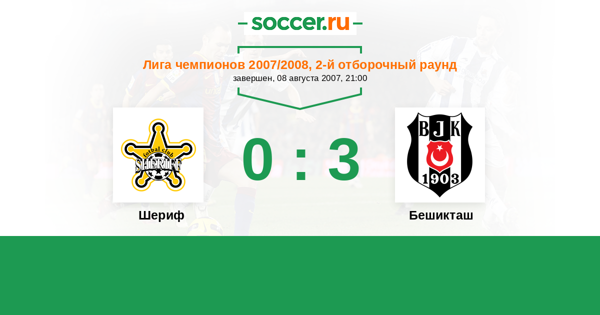 Шериф - Бешикташ: обзор матча 8 августа 2007