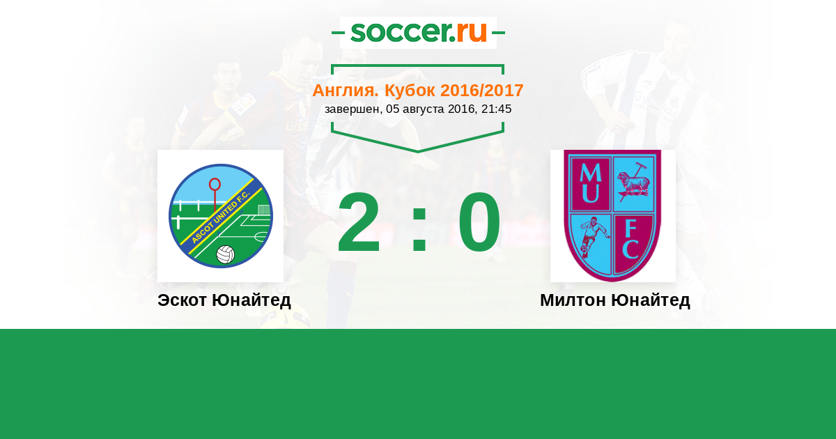 Эскот Юнайтед - Милтон Юнайтед: обзор матча 5 августа 2016