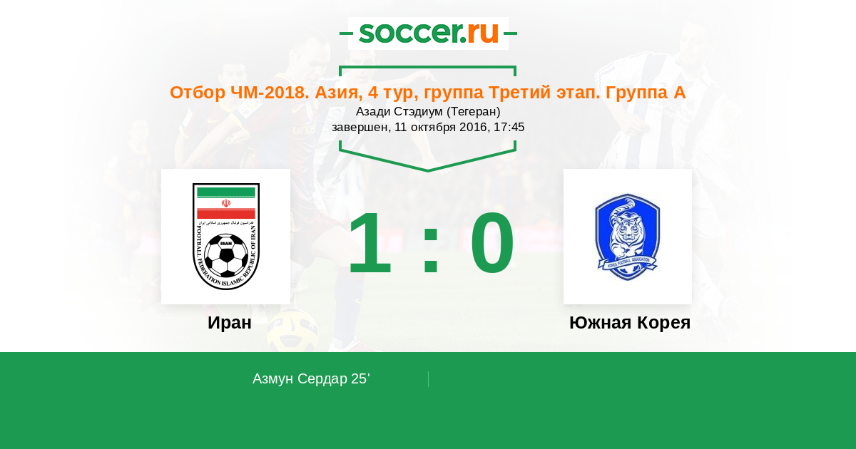 Иран - Южная Корея: обзор матча 11 октября 2016