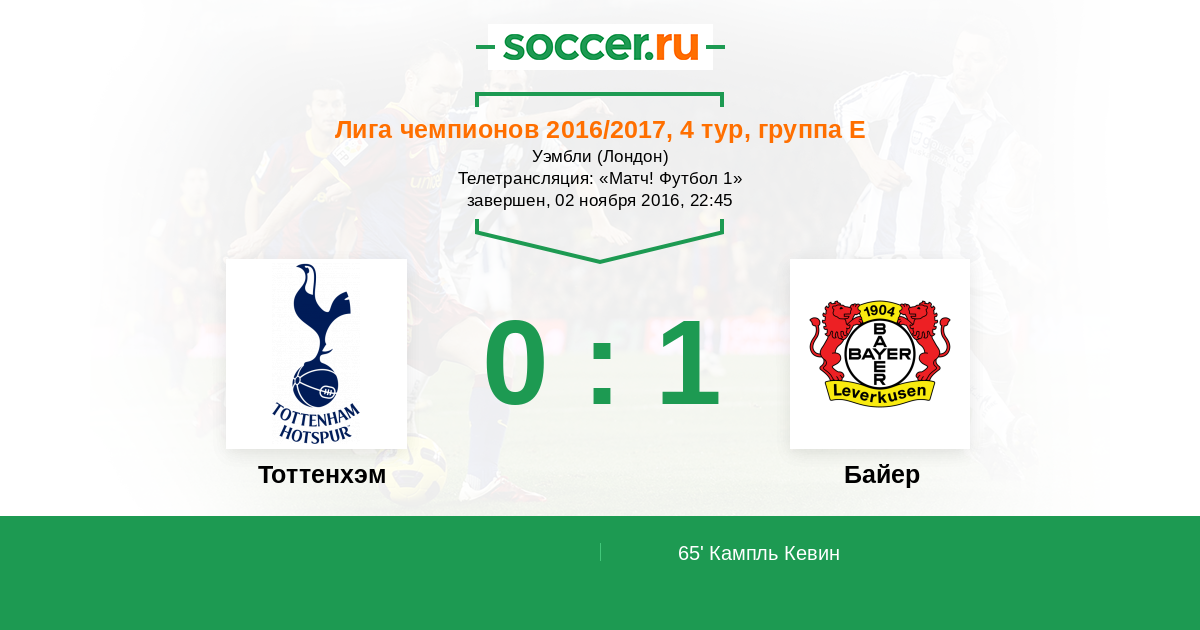 "Байер" одерживает важную гостевую победу против "Тоттенхэма" и выходит на второе место в группе, обосновываясь прямиком за "Монако", который не оставил шансов "ЦСКА во Франции. Пожалуй, справедливее была бы ничья в поединке между "шпорами" и "фармацевтами", но фортуна сегодня оказалась на стороне у подопечных Шмидта. Мы предлагаем вам выбрать лучших игроков матча на ваш взгляд. Текстовую онлайн-трансляцию вел Роман Земко. Следите за футболом на "Соккер.ру"!