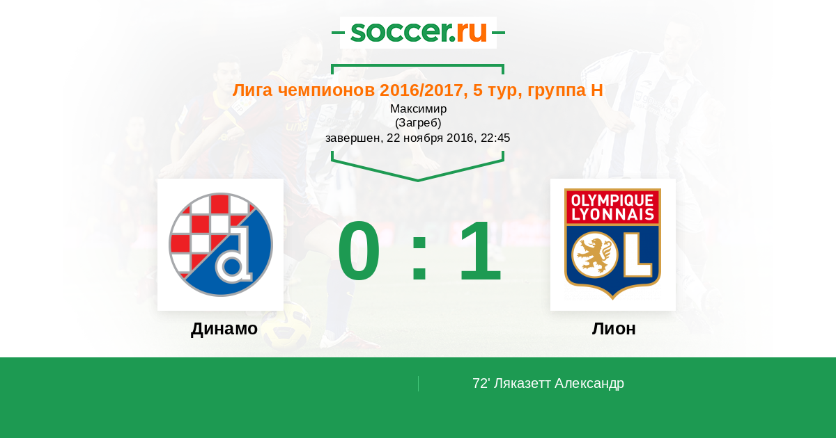 Динамо - Лион: обзор матча 22 ноября 2016