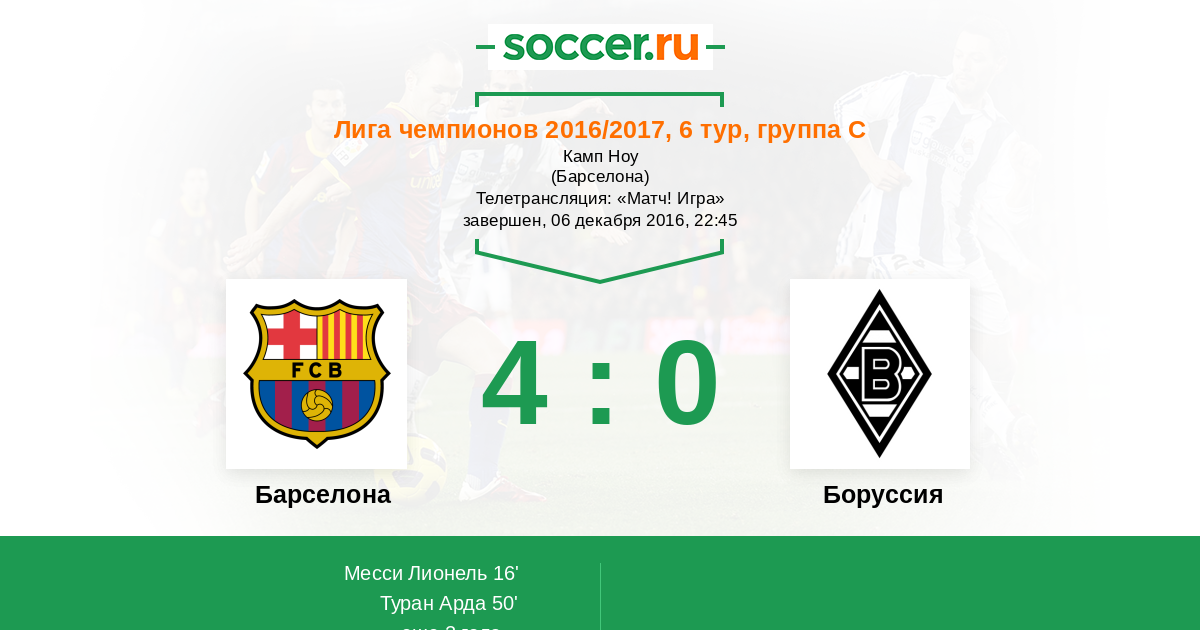 Смогла "Боруссия" продержаться 15 минут. Месси, между прочим, забил свой 10-ый юбилейный гол в этой Лиге Чемпионов.