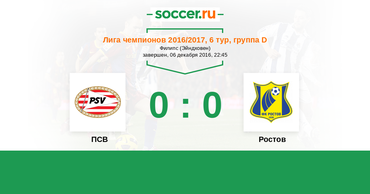 Здравствуйте, уважаемые любители футбола! Сегодня в Эйндховене на стадионе "Филипс" состоится матч заключительного тура группового этапа Лиги Чемпионов - ПСВ встретится с "Ростовом". Час X для обеих команд! Если жёлто - синим, чтобы отправиться в Лигу Европы, достаточно увезти из Нидерландов ничью, то вот действующему чемпиону Эредивизи сегодня нужна только победа. Будем болеть за команду с берегов Дона вместе! Текстовую онлайн - трансляцию этой встречи на http://www.soccer.ru для вас проведёт Олег Олезов.