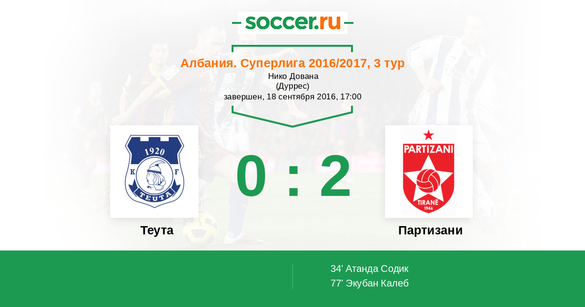 Теута - Партизани: обзор матча 18 сентября 2016