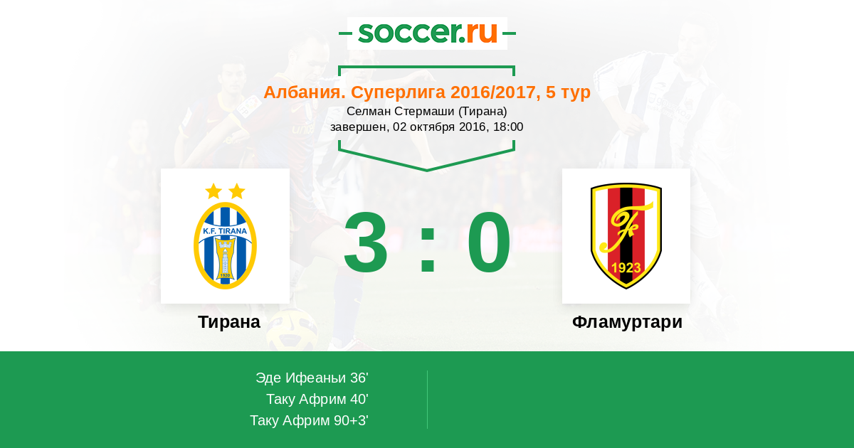 Тирана - Фламуртари: обзор матча 2 октября 2016
