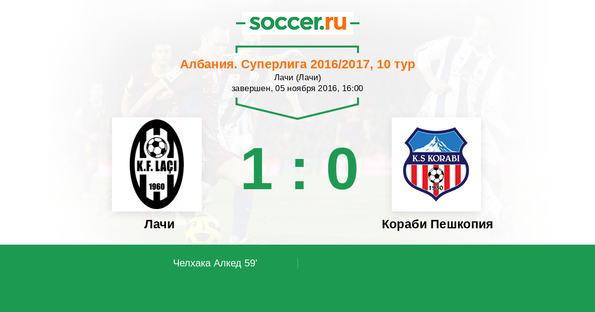 Лачи - Кораби Пешкопия: обзор матча 5 ноября 2016