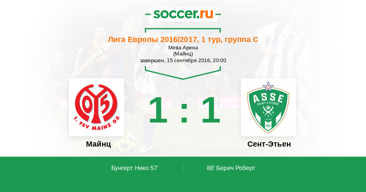 Майнц - Сент-Этьен: обзор матча 15 сентября 2016