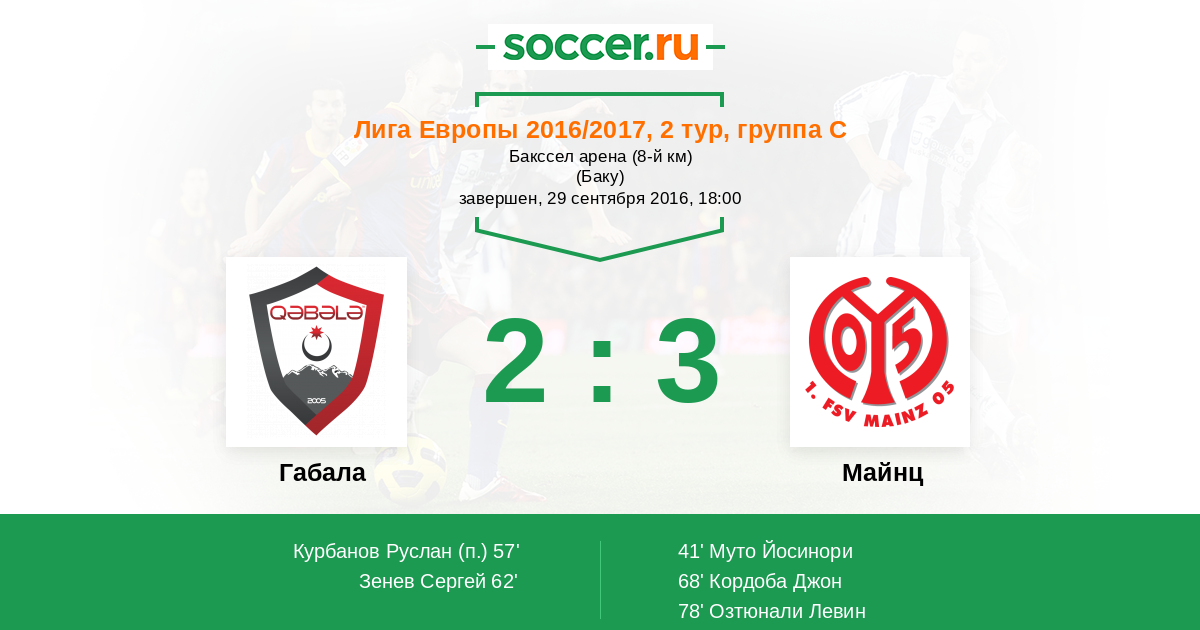 Габала - Майнц: обзор матча 29 сентября 2016